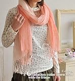 フリンジ付きグラデーションカラーリネンストール 価格: 円 レビュー評価: レビュー数: 春夏の装いにピッタリな明るい色使いがそろったストールです。